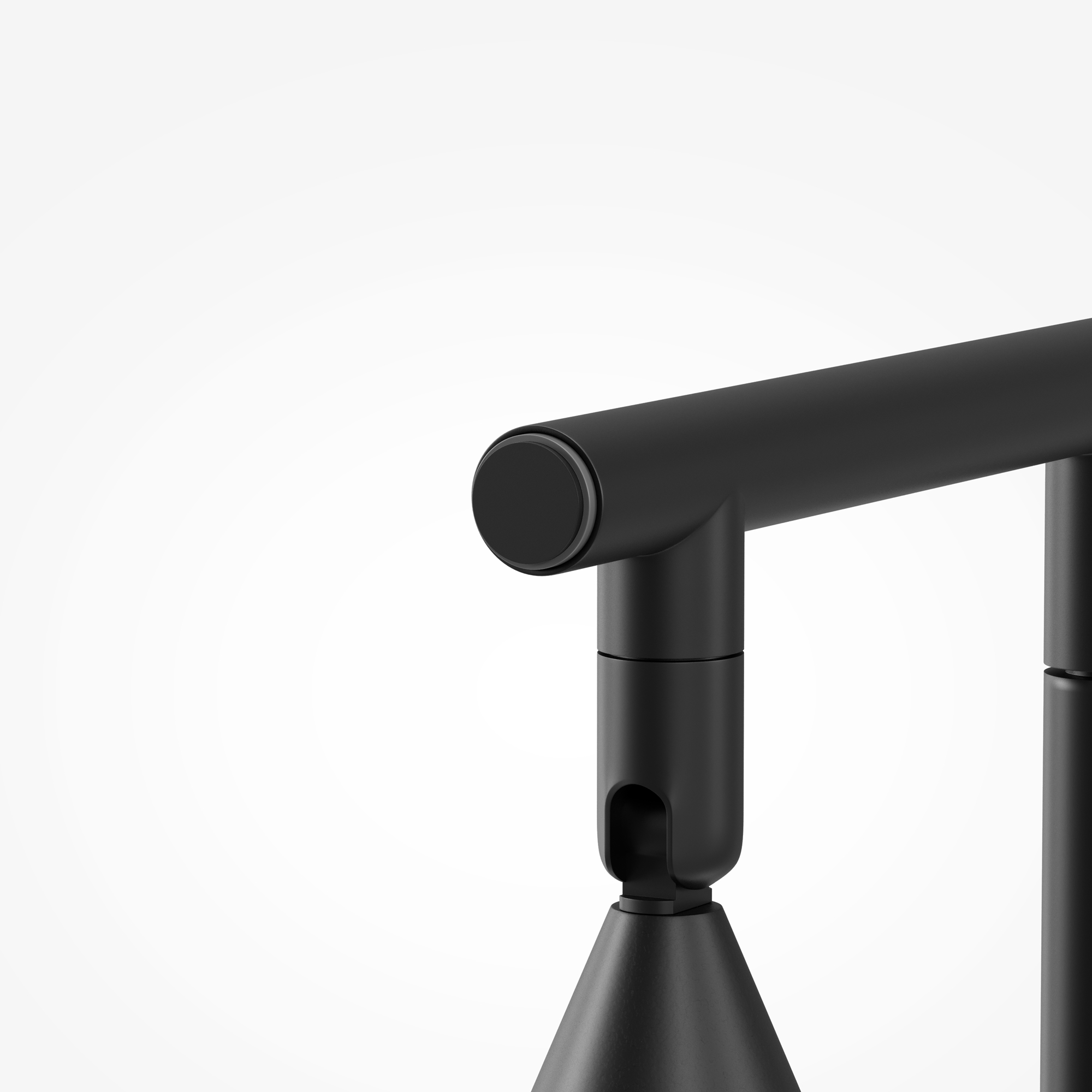Напольный торшер с двумя источниками света. Основной элемент — черный матовый вертикальный рассеиватель со скрытой лентой для переотраженного освещения. Поворотный спот с направленным светом (угол 36°) для точечного освещения. Оба элемента вращаются вокруг оси на 360°. LED-источники с температурой 3000K и высоким индексом цветопередачи CRI 90. Функция диммирования. Корпус из алюминия с черным антибликовым покрытием. Для современных интерьеров, обеспечивает как общее, так и акцентное освещение.