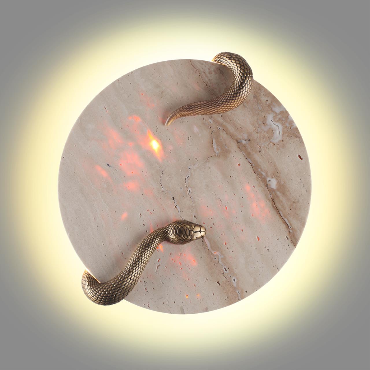 Образ мудрой змеи часто встречается в украшениях, в декоре одежды и предметах интерьера. Наш декор в светильнике SNAKE выполнен из настоящей латуни. Плафон выполнен из камня травертина, при этом за счет того, что камень в некоторых местах более тонкий, в этих местах создается необычное эффектное сияние.https://youtube.com/watch?v=F0J3WzIlpqY%3Fsi%3D1tHZ5zvM1aLcGmpx