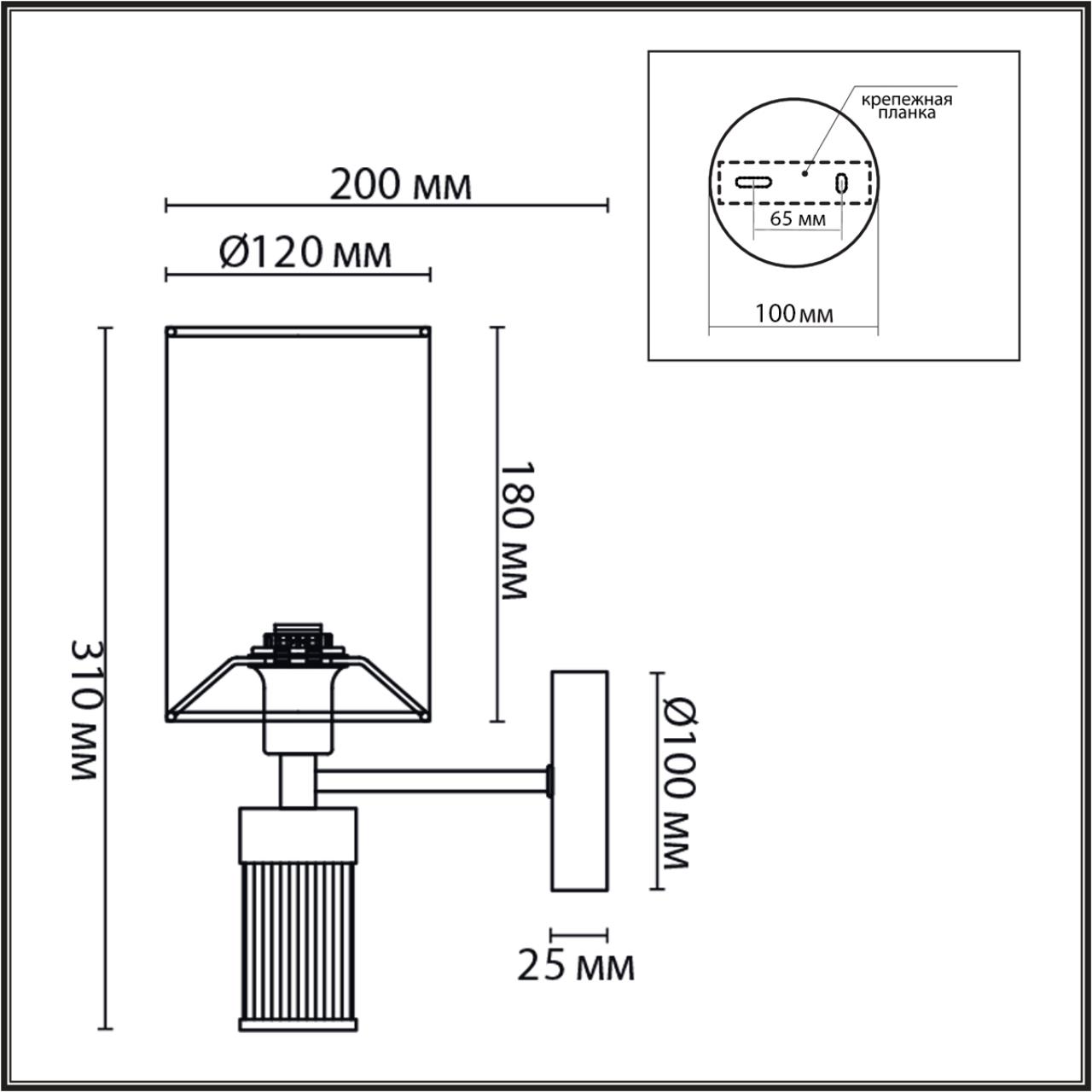 Светильник: Отступ от стены, мм