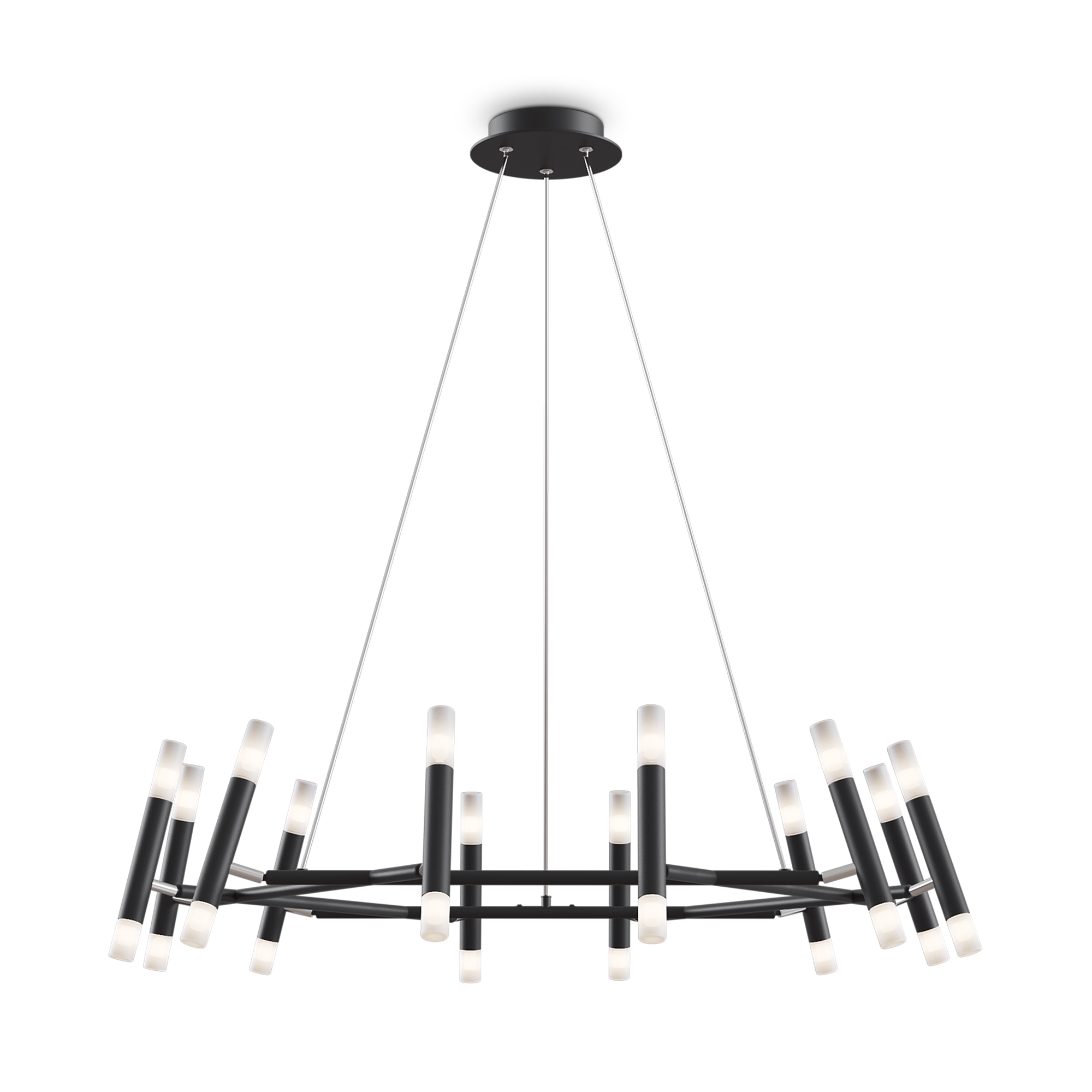 Металлическая арматура в матовом черном цвете. Цилиндрические плафоны вра щаются на 340° по горизонтали и 90° по вертикали. Возможность видоизменять дизайн светильника. Рассеиватель из матового стекла.
