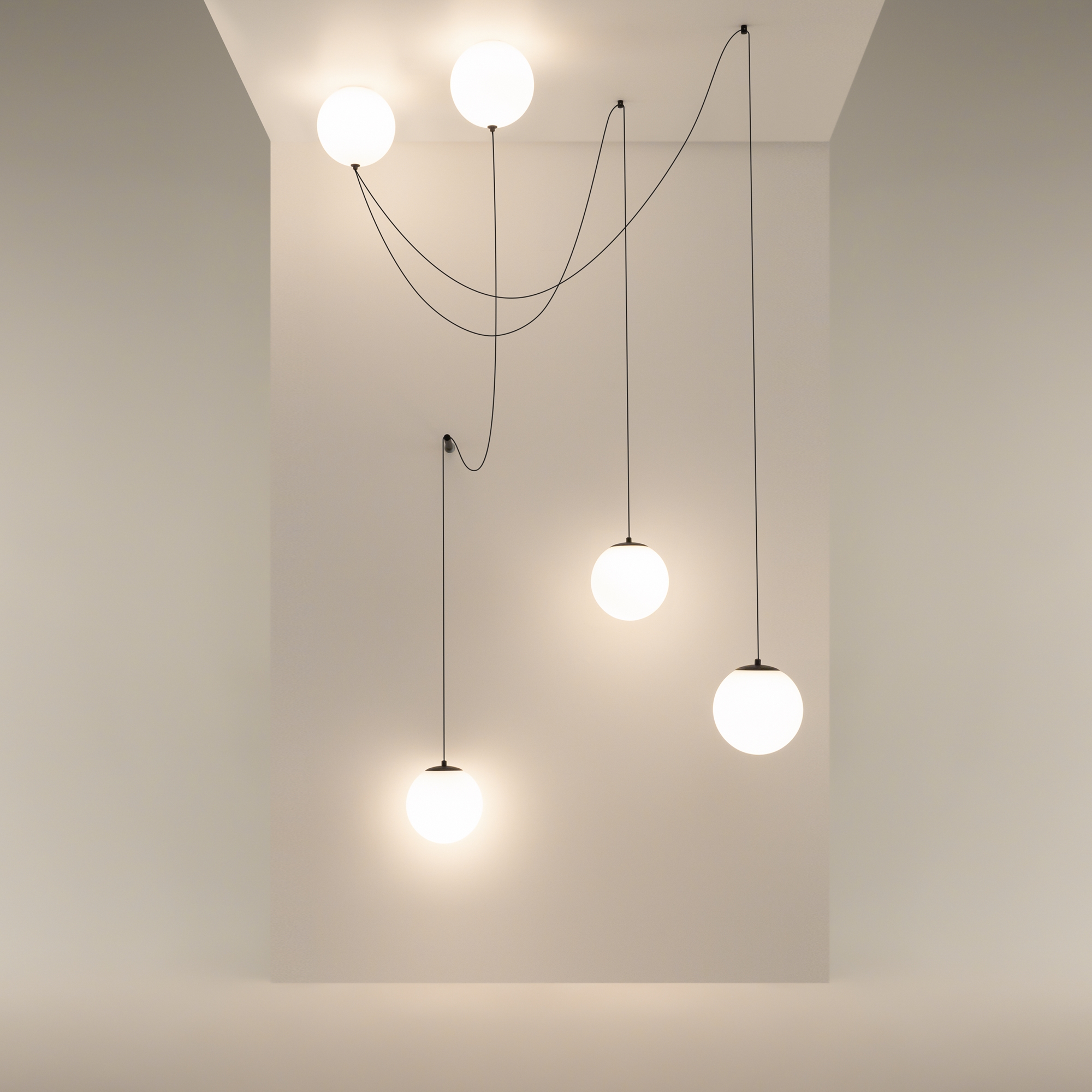 Визуальный язык серии Twins – минимализм, функциональность, простые формы, инженерная мысль и уникальность. В серии представлены четыре формата подвесных светильников, торшер и потолочный светильник. Некоторые артикулы 2-в-1: могут крепиться как к стене, так и к потолку. Внутри стеклянного шара-основания скрыты: драйвер, LED-источник (3000K) и остается пространство для провода (макс длина 1,5-2 метра). Это основа почти невидимого накладного монтажа. Серия Twins может стать основой световых инсталляций.
