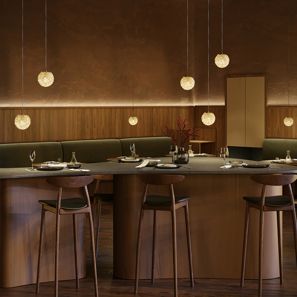 Подвесной светильник выполнен из металла в цвете теплой латуни с плафоном из хрусталя. Сменный источник света, цоколь: G9. Диаметр плафона: 130 мм, высота регулируется до 3183 мм. Светильник состоит из множества хрустальных элементов, создающих эффект мерцания. Предназначен для использования в интерьерах классического и современного стилей. Рекомендуется для гостиных, столовых и спален. Возможность комбинирования нескольких подвесов на разной высоте для создания каскадного эффекта.